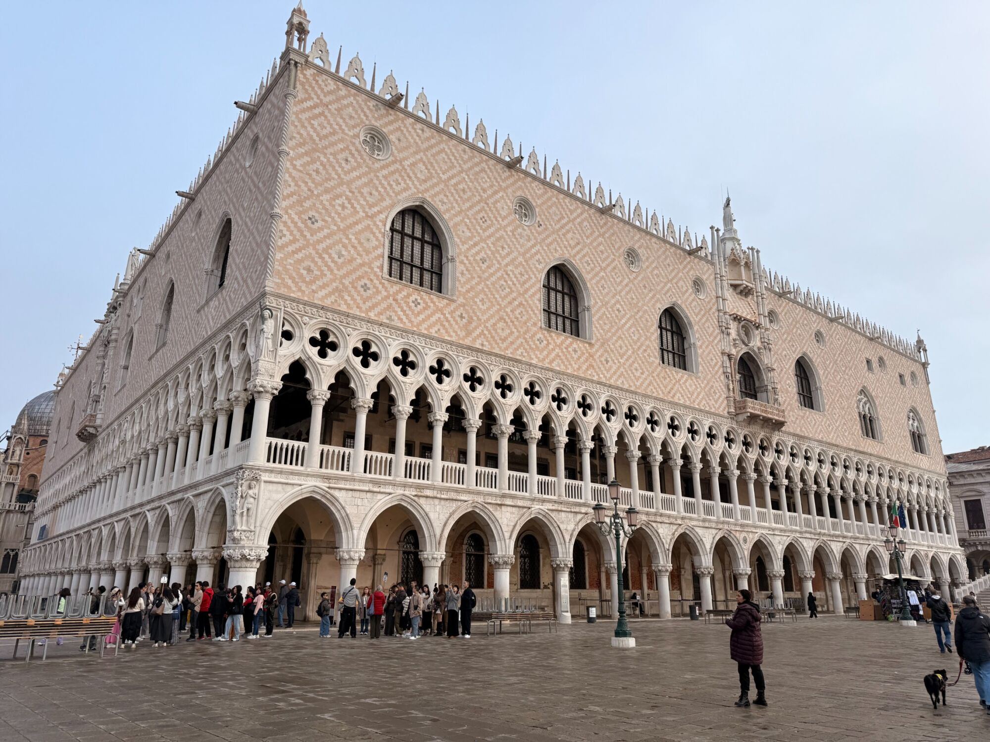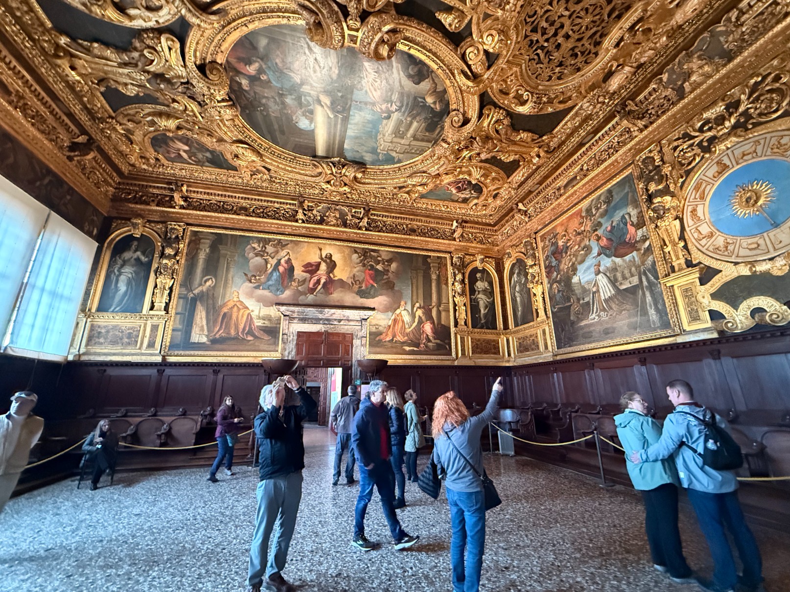 Symbol moci Benátské republiky. Nejen sídlo dóžete, ale i soudy, vězení a správní centrum. Uvnitř jsme viděli obrovské sály plné obrazů, které měly připomínat slávu státu. Jednotlivými sály nás provázela ChatGPT, která nám kromě jiného vyprávěla o místnosti Sala Bocca di Leone, kde mohli Benátčané podat anonymní udání a o tom, že Benátky byly svobodné, ale zároveň velmi přísně kontrolované.